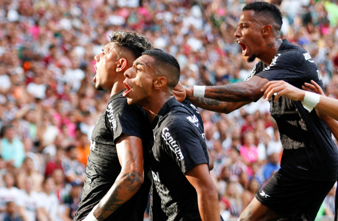O Botafogo deu mais um passo rumo ao tricampeonato do Brasileirão, neste domingo, 8, ao derrotar o Fluminense por 2 a 0, no Maracanã, em confronto válido pela 26ª rodada. Mesmo atuando como visitante, o Glorioso marcou com Júnior Santos e Tiquinho Soares. Para melhorar a situação da Estrela Solitária, todos seus concorrentes tropeçaram neste fim de semana, aumentando sua vantagem para nove pontos. O segundo colocado Red Bull Bragantino ficou no empate em 1 a 1 com o Athletico-PR, na Arena da Baixada. Já o Grêmio, na terceira posição, perdeu o clássico para o Internacional, no Beira-Rio. Em seguida, o Palmeiras foi derrotado pelo Santos, na Arena Baruei. Já o Flamengo, atual quinto colocado, só empatou com o Corinthians, na Neo Química Arena. A rodada ainda teve Bahia 6 x 4 Goiás, Vasco 0 x 0 São Paulo, Atlético-MG 1 x 2 Coritiba e Fortaleza 3 x 2 América. A última partida da rodada acontece nesta segunda-feira, 9, entre Cuiabá e Cruzeiro, na Arena Pantanal. Veja a tabela abaixo.