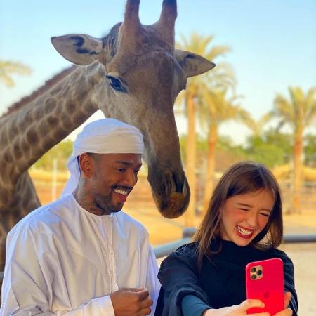 Os dois se divertiram alimentando os bichos e até posaram para a selfie com uma girafa. "Ela sempre falou dessa girafa. Graças a Deus eu trouxe ela para ver essa girafa", escreveu Nego do Borel na legenda da foto.