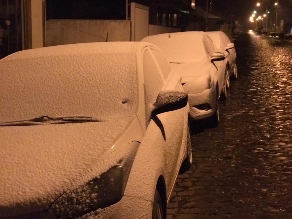 As condições de umidade e de temperatura favoreceram o aparecimento dos flocos de neve. Carros, gramados e ruas amanheceram cobertos por uma camada de gelo.