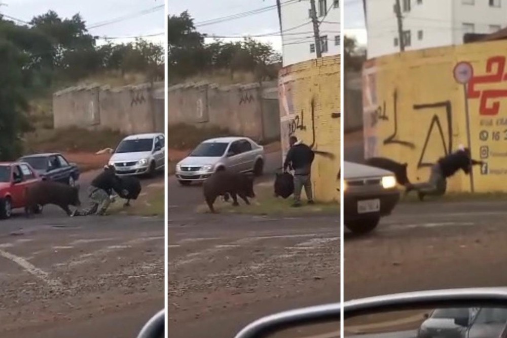 Willian foi atacado por um porco no fim da tarde de domingo (18), no Jardim Bonsucesso, enquanto trabalhava. Imagens enviadas à EPTV, afiliada da TV Globo, mostram o momento em que ele foge do animal e tenta se proteger usando a bolsa que levava nas costas.