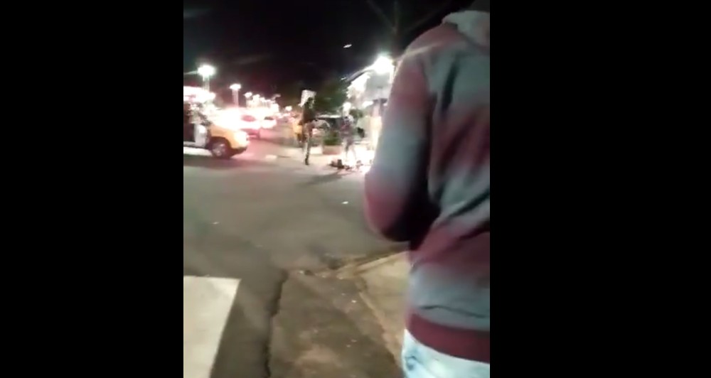 Um policial militar acertou uma voadora em um adolescente de 17 anos, na noite de domingo (1º), em Pérola, no noroeste do Paraná. O momento da ação foi registrado por pessoas que estavam no local. Veja, acima, as imagens.