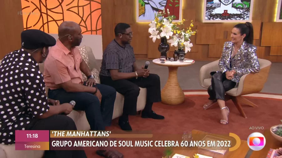 Fátima Bernardes precisou pensar rápido hoje no "Encontro"! Ela entrevistava a banda The Manhattans ao vivo quando teve um problema com a tradução simultânea e não hesitou: continuou em inglês mesmo.