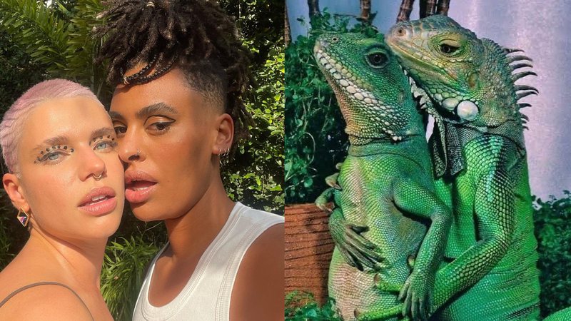 Bruna Linzmeyer divertiu os seguidores ao posar com a namorada, Marta Supernova, e comparar a pose do casal com um meme de iguanas, nesta sexta-feira (13/05). As iguanas aparecem abraçadas, igual casais, e internautas brincam: "Já repararam que todo casal fica assim em shows?".