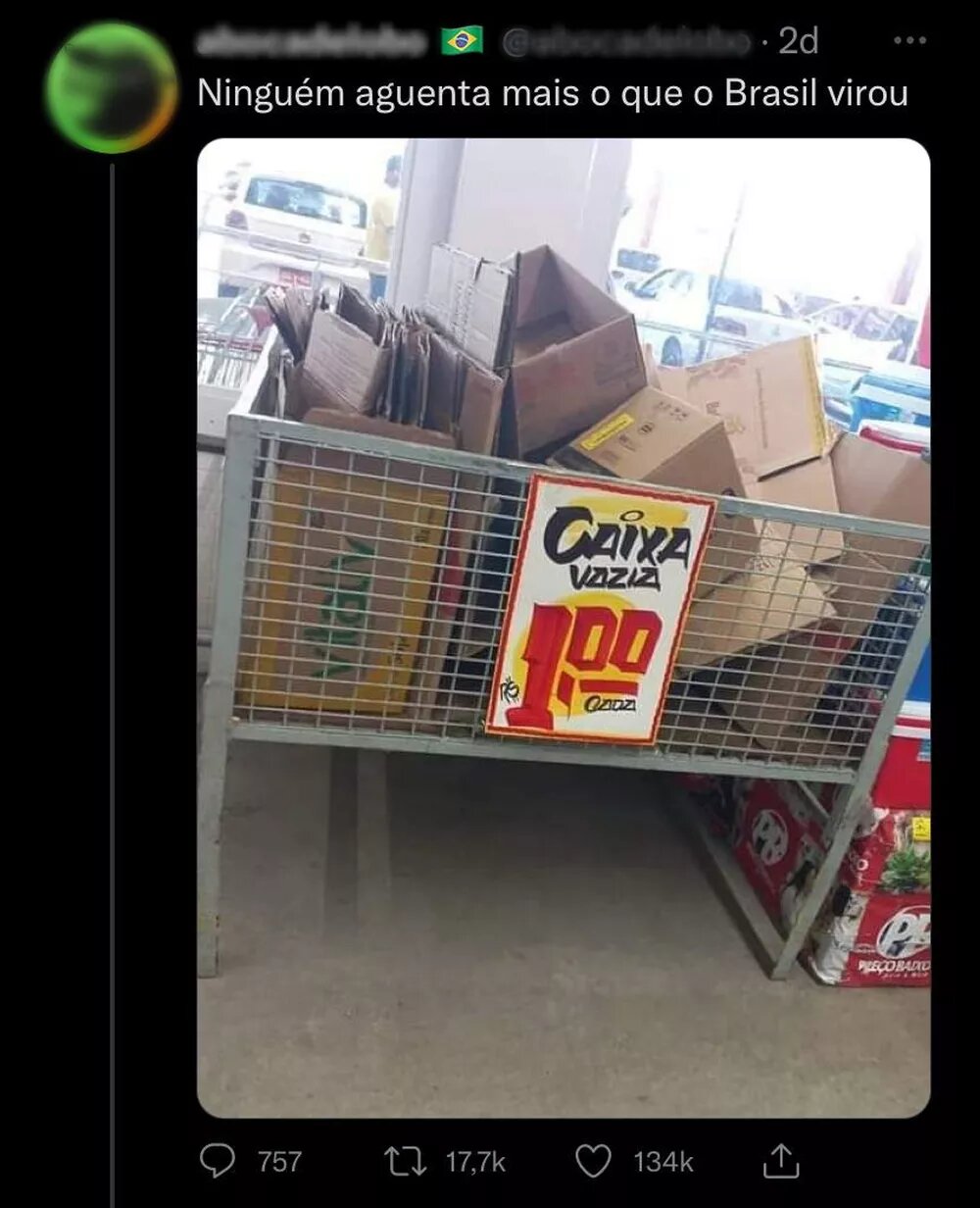 Uma postagem nas redes sociais que mostra a venda de caixas de papelão, em um supermercado de Belém, ganhou grande repercussão e gerou polêmica entre os internautas.