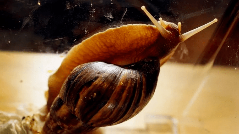 Os caramujos-gigantes-africanos atingem tamanhos de até 20 centímetros e se reproduzem rapidamente.