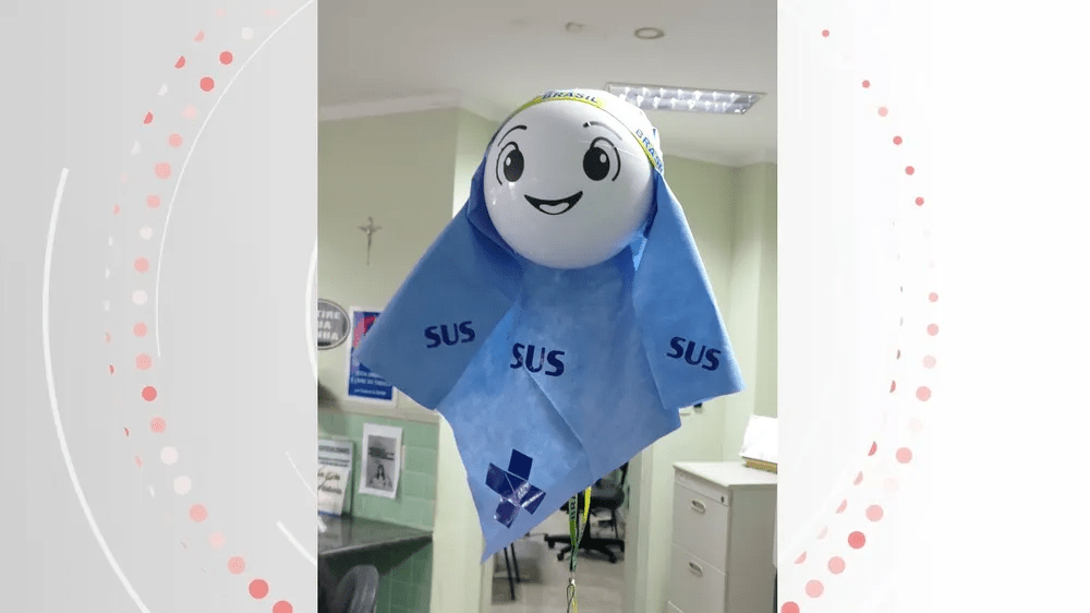 "Perguntei pra minha diretora se podia fazer o mascote da Copa para enfeitar a unidade. Eu procurei na internet pra ver como fazia. Aí como não ia colocar o símbolo do Qatar, pensamos em homenagear o SUS e aí veio a ideia de colocar o nome, La'SUS. A gente quis aproveitar também e pegar o pano azul pra simbolizar o novembro azul", explicou Rose.