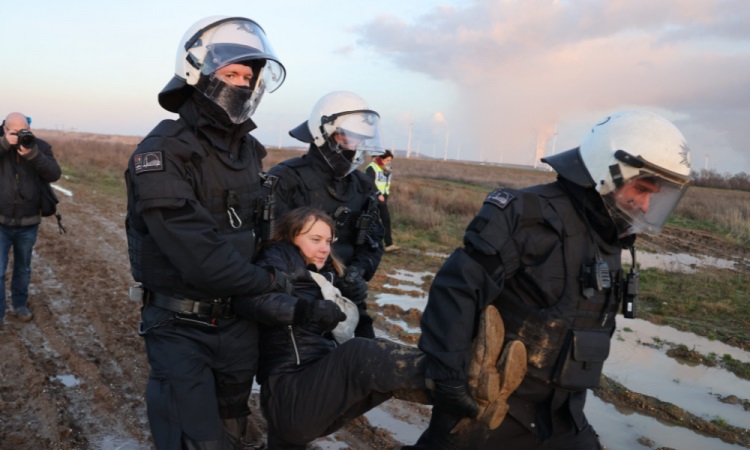 No último sábado, 14, policiais e manifestantes entraram em conflito. O ato reuniu cerca de de 35 mil pessoas, segundo os organizadores. Militantes tentaram entrar em áreas restritas de uma mina de lignito localizada no oeste do país. A polícia chegou a se pronunciar pedindo para que as pessoas “saiam desta área imediatamente!”. Houve confrontos entre grupos de manifestantes e policiais, contra quem foram lançados sinalizadores e outros artefatos. Imagens televisionadas mostraram uma fileira de agentes equipados com capacetes e escudos. Eles tentavam impedir que os ativistas se aproximassem das margens de um fosso profundo. O acesso ao município de Lützerath foi bloqueado por grades e ocupados por manifestantes. O protesto foi organizado em apoio aos ativistas e liderado simbolicamente por Thunberg.