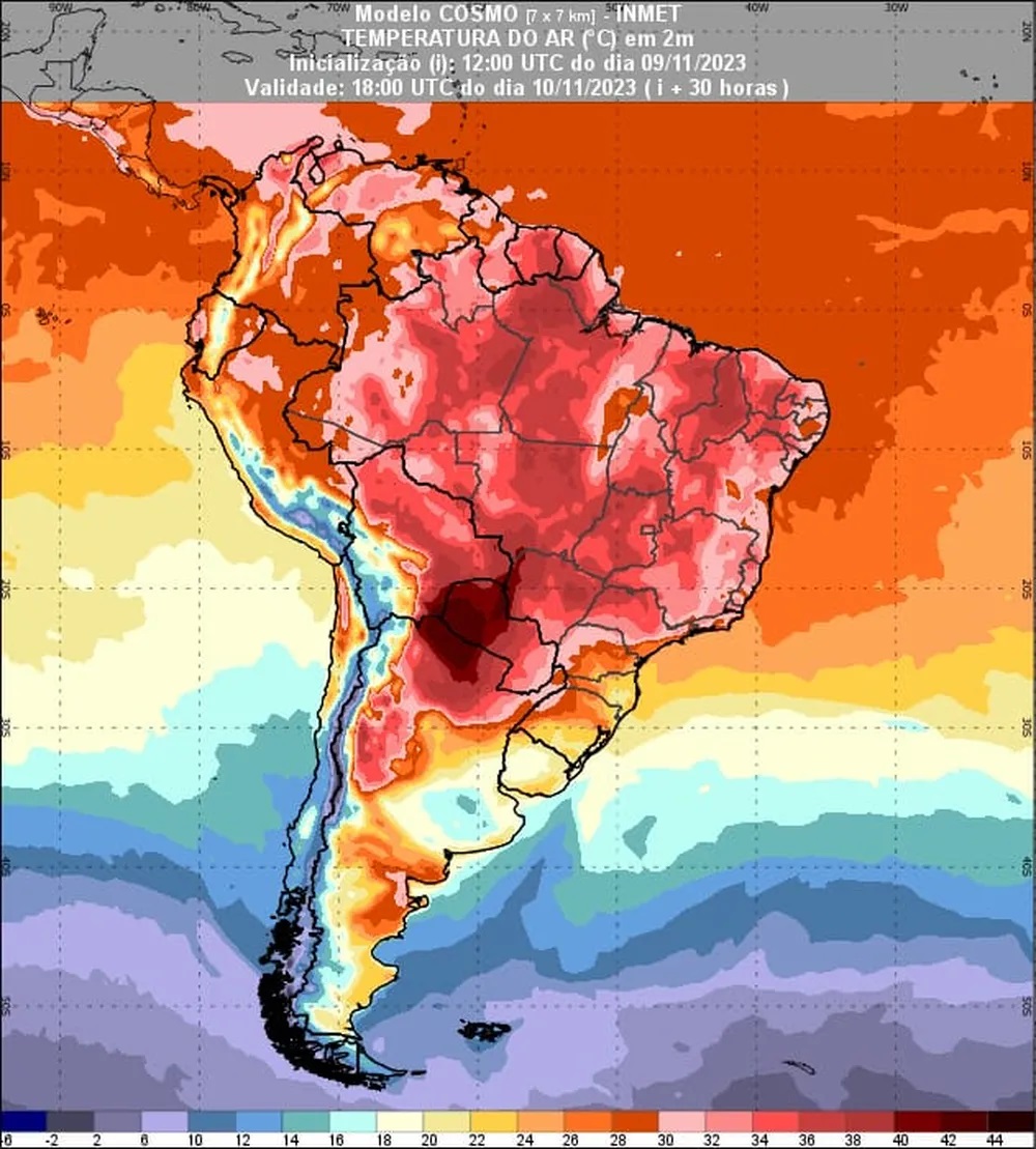 ????️As marcas registradas pelos termômetros no Brasil seguem elevadas já a partir desta sexta-feira (10). A temperatura máxima deve ficar próxima de 40 °C em boa parte do Triângulo Mineiro, interior paulista e sul de Goiás. O Espírito Santo também deve registrar calor intenso.