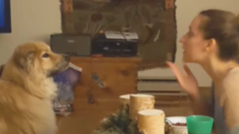 Um cachorrinho inocente, chamado Jasper, de Ontário, no Canadá, teve uma reação adorável após ver sua tutora soprando um beijinho para ele.