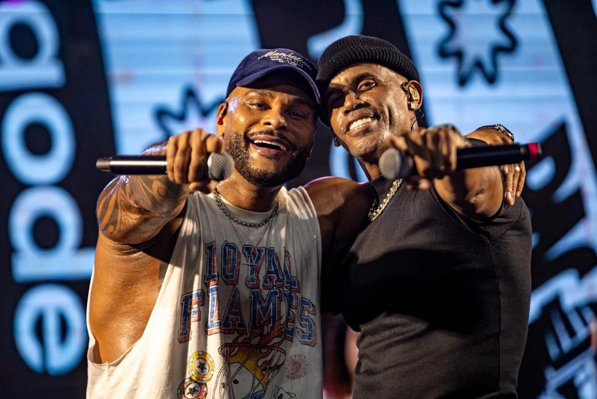 Um dos momentos mais emocionantes da festa foi a entrada triunfal do Ilê Aiyê, que surgiu em meio ao público e se uniu ao grupo em uma abertura repleta de energia e representatividade. “Foi incrível ver o Ilê entrando pelo meio do público, cantar para a galera antes de subir ao palco e sentir toda a emoção daquele momento”, contou Flavinho.