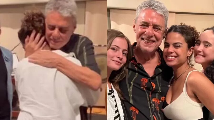 Chico Buarque recebe visita especial de netas em estúdio