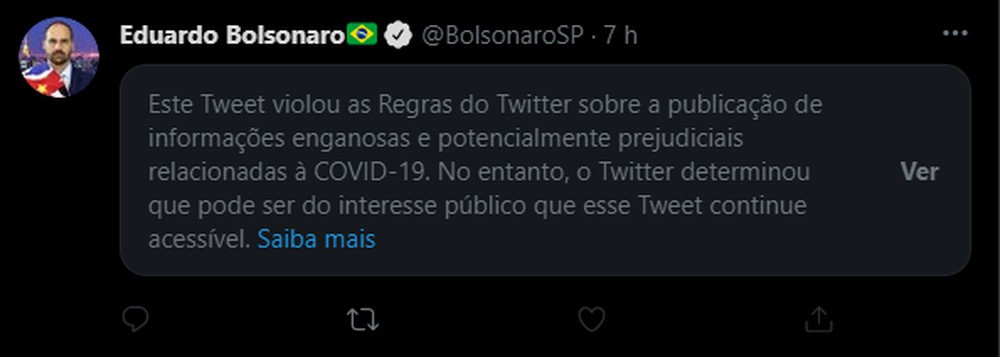 Twitter coloca aviso de publicação enganosa em post de Eduardo Bolson...